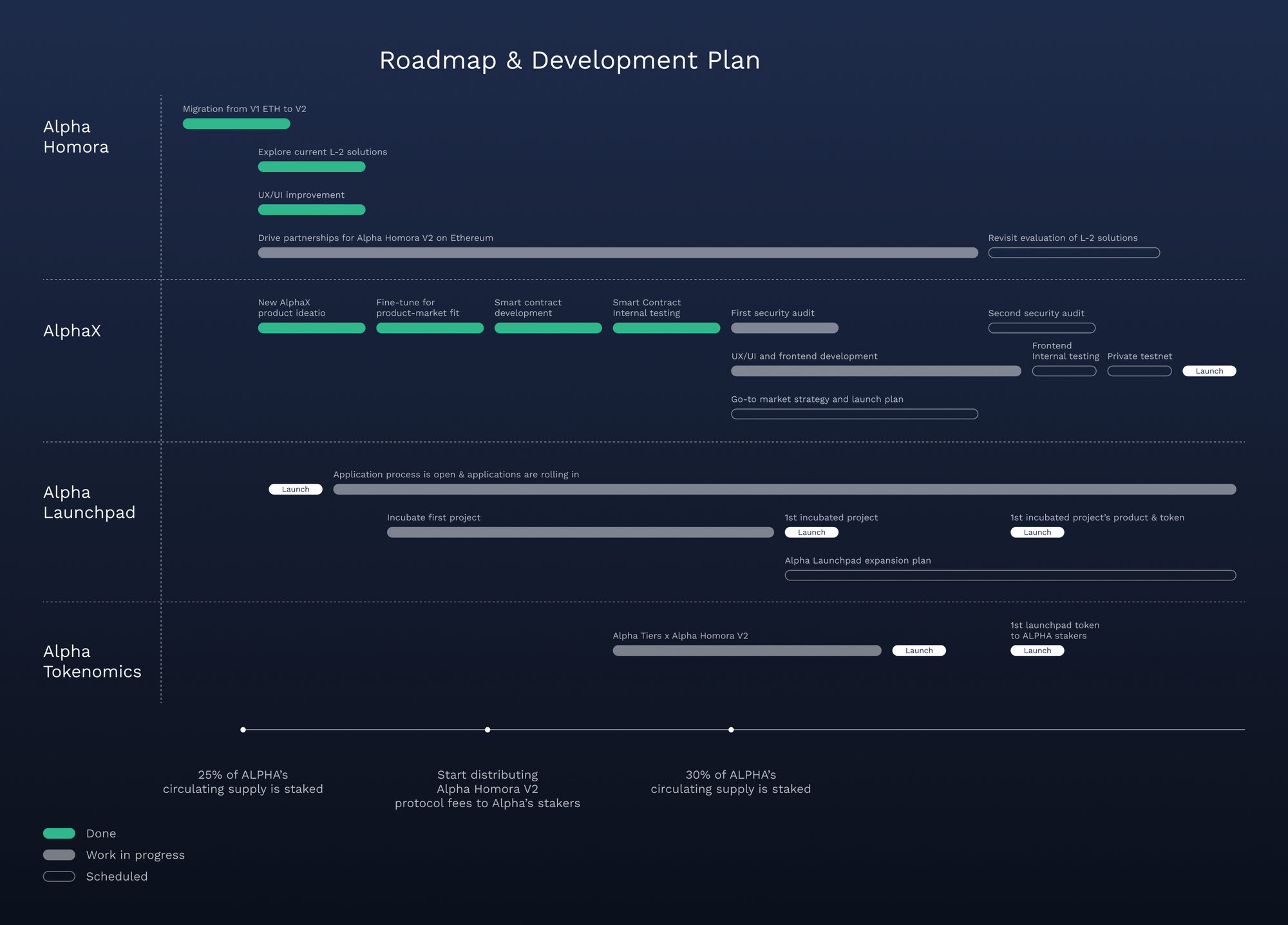 Looking forward, we continue to actively build, expand, and conquer on all fronts, from Alpha Homora, AlphaX, Alpha Launchpad, to Alpha Tokenomics, all of which will bring significant benefits to Alpha users and maximum value accrual to ALPHA.
