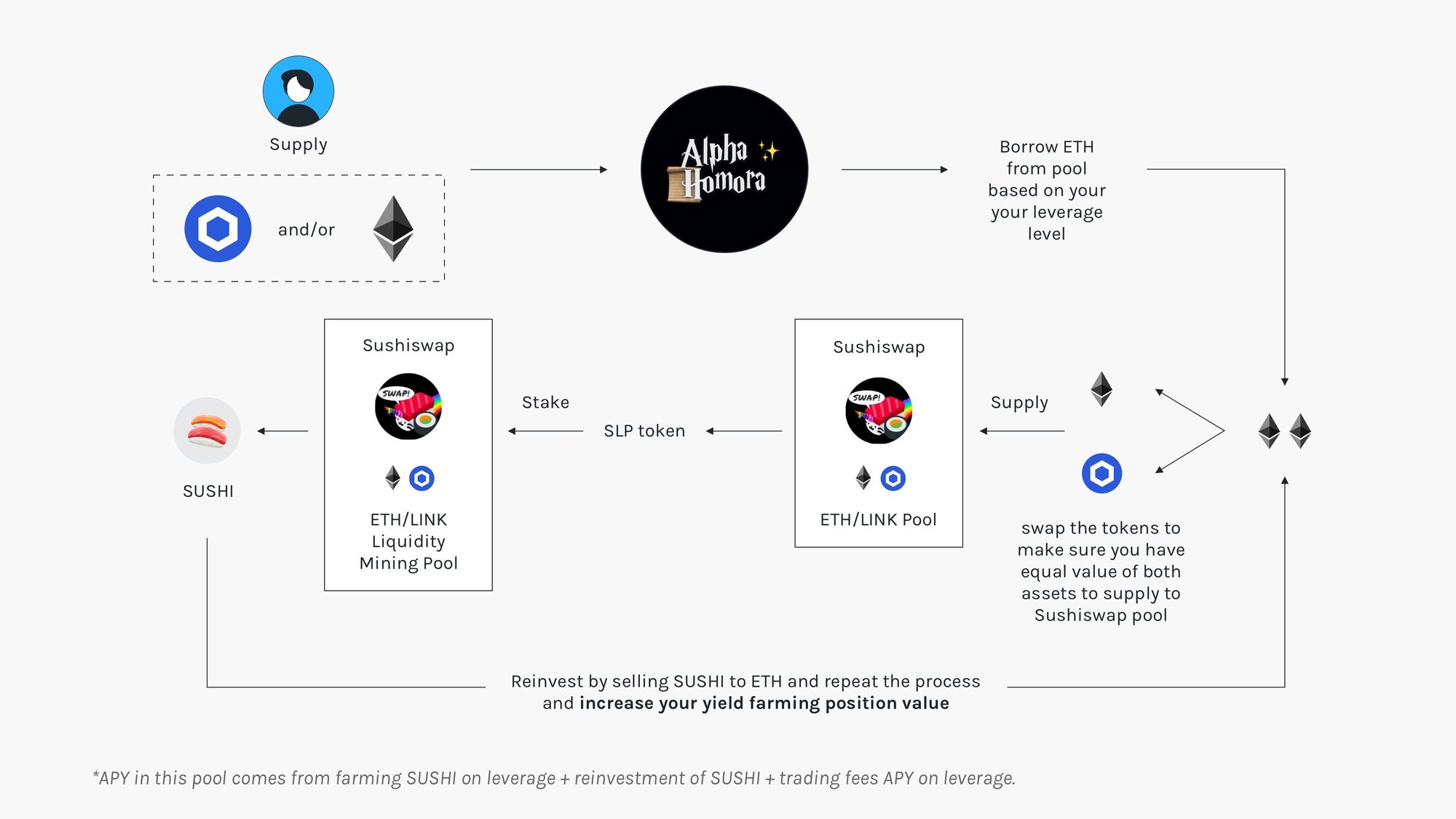 As Alpha Homora continues to expand the support of more leveraged yield farming pools, we would like to first bring on the oracle players by supporting ETH/LINK and ETH/BAND pools on SushiSwap.