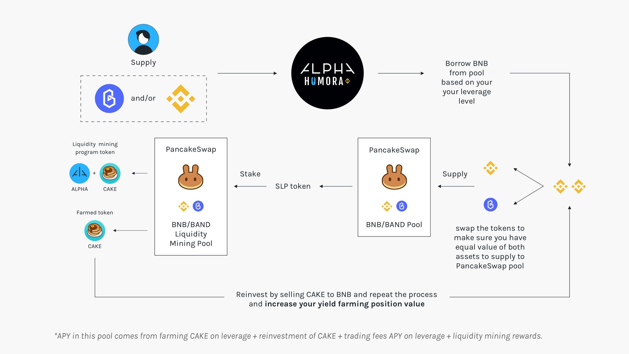 - Earn additional liquidity mining rewards (CAKE and ALPHA)