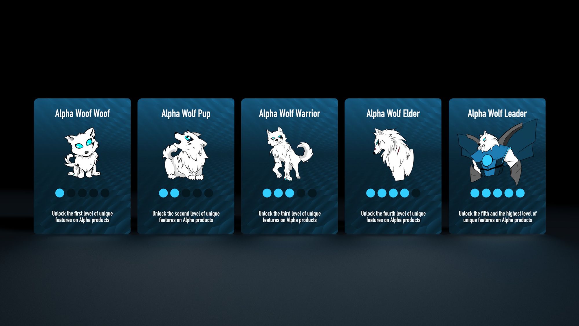 - Alpha Woof Woof: Anyone who stakes 0 - 1,000 ALPHA tokens (including those who don’t stake any) - currently doesn’t unlock any features, but there may be in the future.