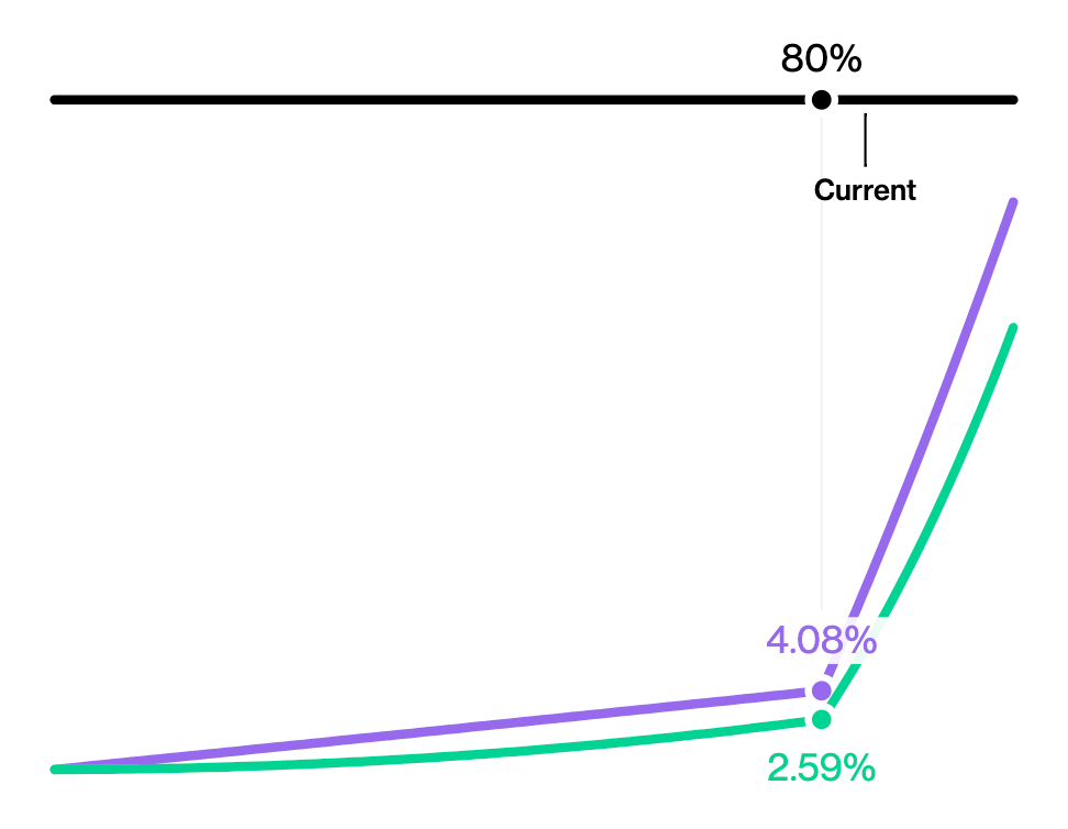 The higher the utilization rate, the higher the lenders gain. However, if the rate is too high, lenders are more at risk when prices fluctuate. Thus, an asset's optimal utilization rate \(U_{opt,a}\) should balance between risks and rewards.