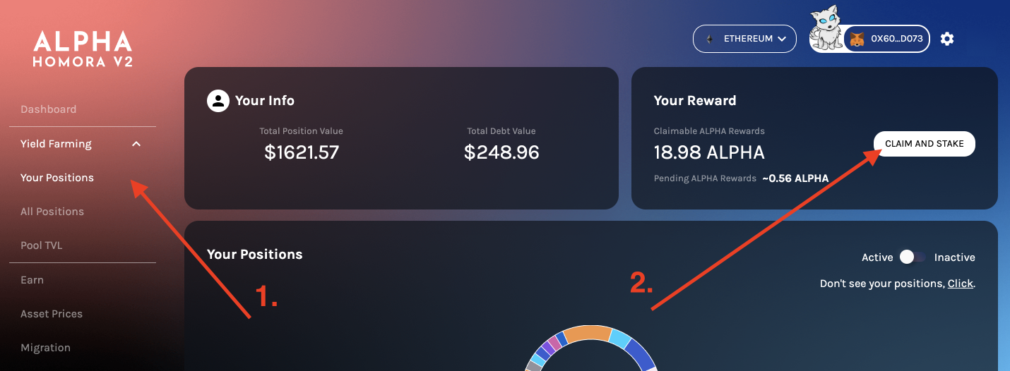 Go on Alpha Homora V2 (Ethereum) DApp to begin the claiming process