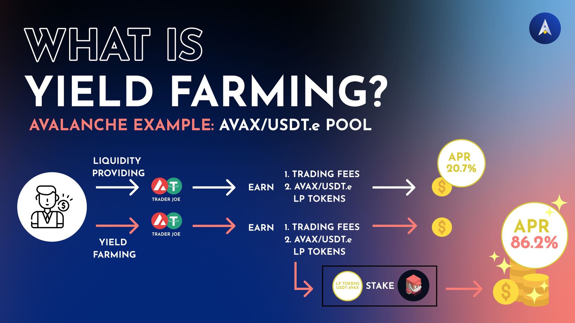 To incentivize users to provide liquidity, DEX protocols give additional incentives called yield farming rewards for users to provide liquidity. So, liquidity providers can become yield farmers to earn more rewards by staking their LP tokens to earn yield farming rewards, hence it is called yield farming with LP tokens. On Trader Joe, users can earn up to 65.5% APR from providing liquidity to USDT.e/AVAX and staking the LP token of this USDT.e/AVAX pool today. As a result, yield farmers get 86.2% APR (20.7% trading fees + 65.5% yield farming rewards which come in JOE tokens).