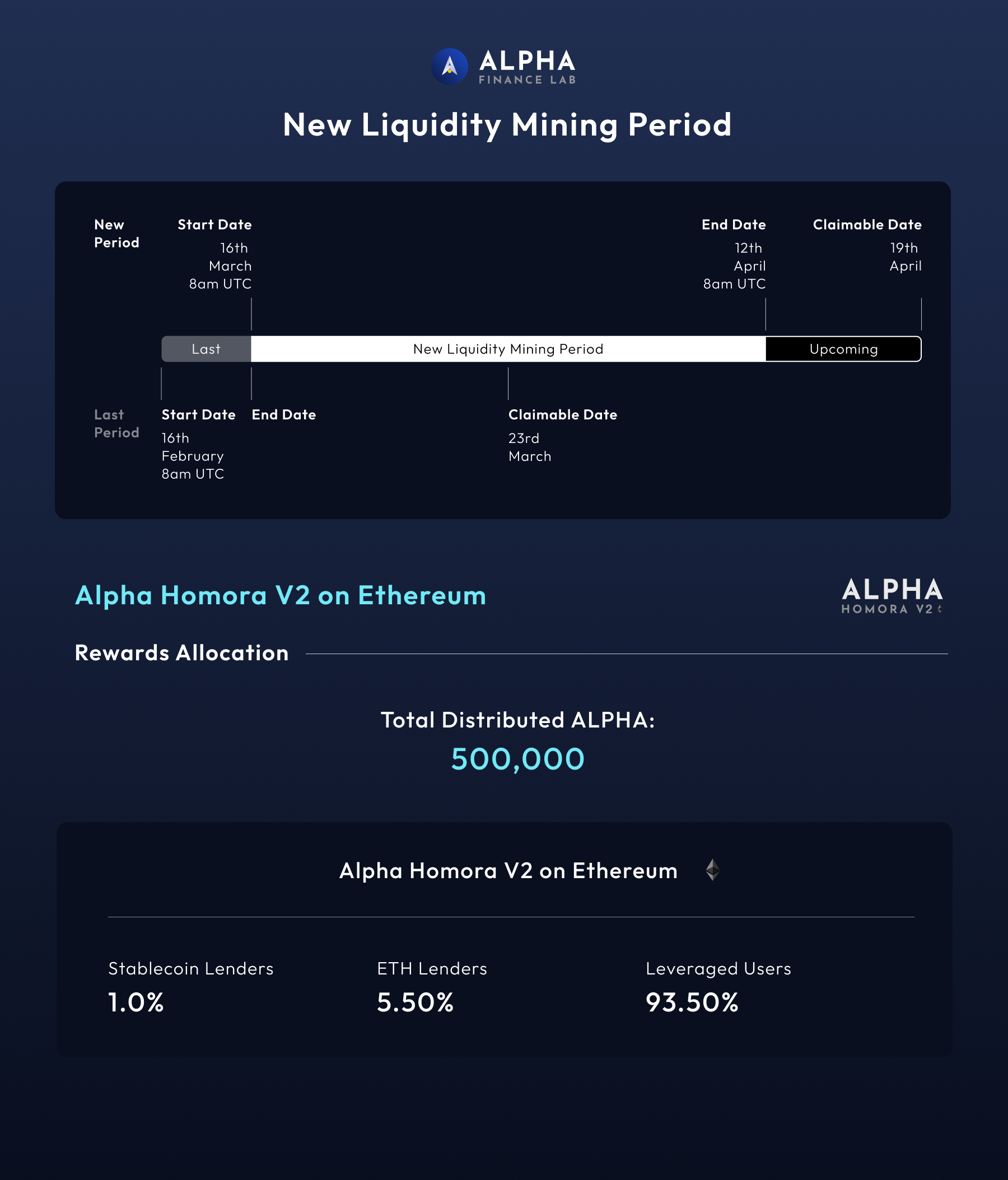 The new liquidity mining period and when to claim ALPHA rewards will be: